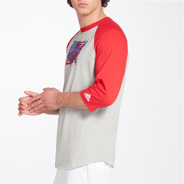 adidas Men's Triple Stripe Graphic 3/4 Sleeve Baseball Red Usa Bats Shirt