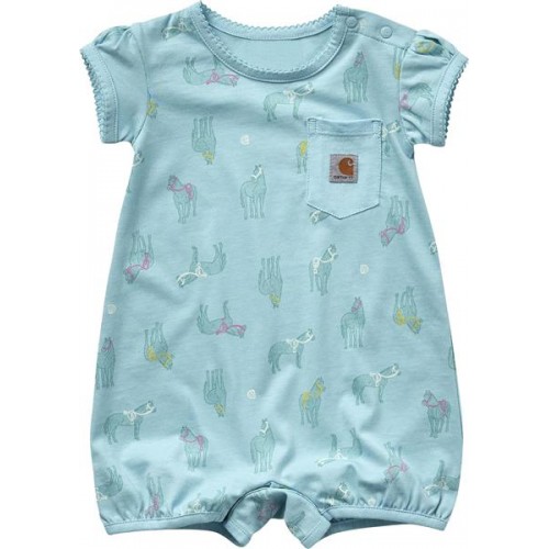 Carhartt Infant Girls' Short Sleeve Horse Print Angel Blue Romper