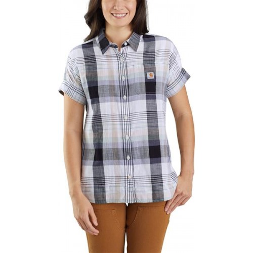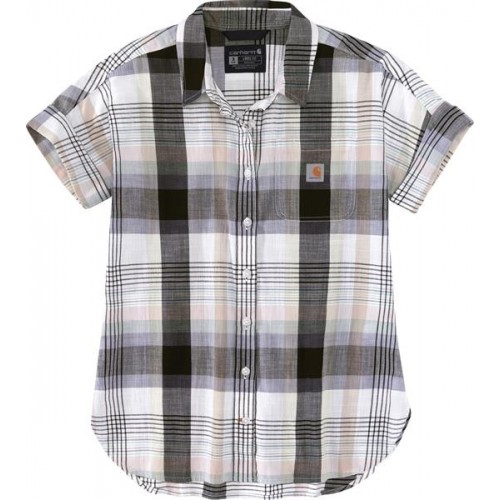 Carhartt Women's Lightweight Twill Plaid Short Sleeve White Shirt