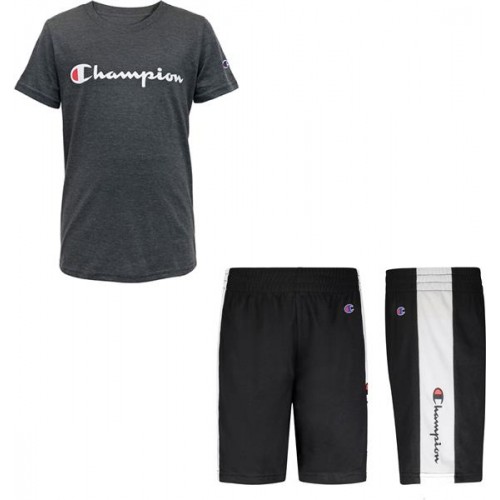 Champion Little Boys' Classic Script Basketball T-Shirt and Shorts Granite Heather/Black Set