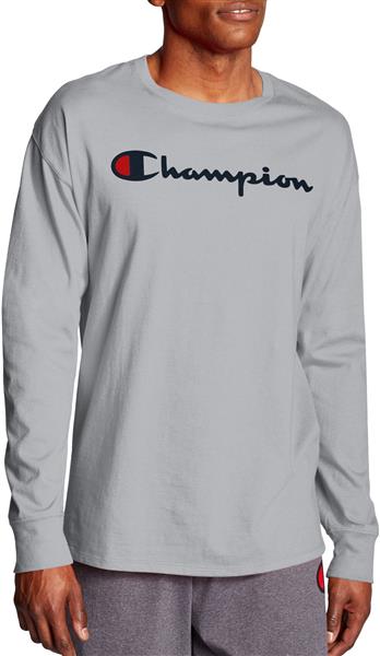 Champion Men's Chest Script Long Sleeve Oxford Grey Tee