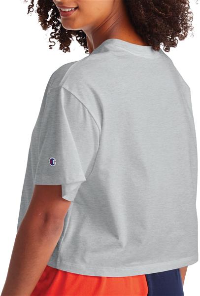 Champion Women's Cropped Script Logo Short Sleeve Oxford Grey T-Shirt