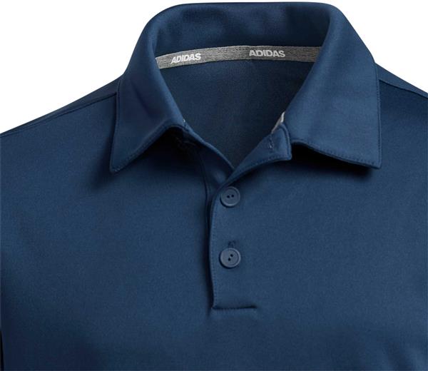 - Three-button polo collar for on course ready look