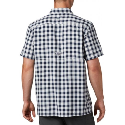 Columbia Men's PFG Super Slack Tide Short Sleeve Collegiate Navy Palaka Shirt