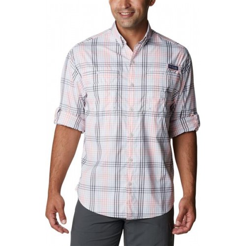 Columbia Men's PFG Super Tamiami Long Sleeve Cool Grey Blanket Gingham Shirt