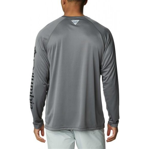 Columbia Men's PFG Terminal Tackle Long Sleeve City Grey/Black Logo Shirt