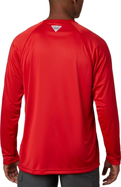 Columbia Men's PFG Terminal Tackle Long Sleeve Red Spark/White Logo Shirt
