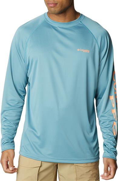 Columbia Men's PFG Terminal Tackle Long Sleeve Storm/Bright Nectar Logo Shirt
