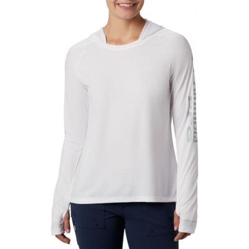 Columbia Women's PFG Tidal Tee White/Cirrus Grey Logo Hoodie