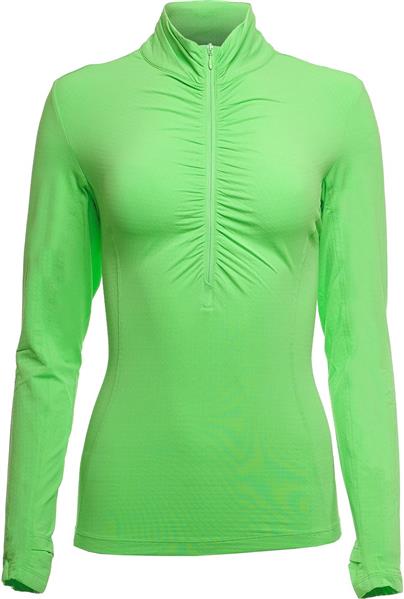 IBKUL Women's Long Sleeve Ruched Mock Neck Golf Lime Polo