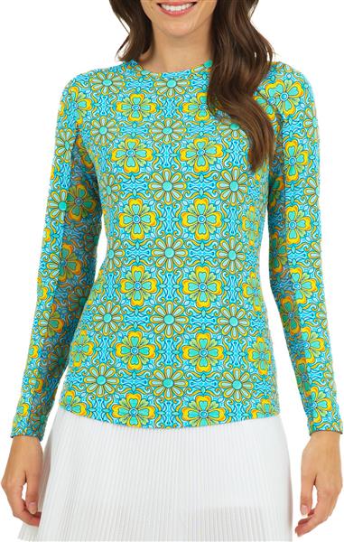 IBKUL Women's Long Sleeve Scarlet Print Crew Neck Golf Scarlet Turq Multi Polo