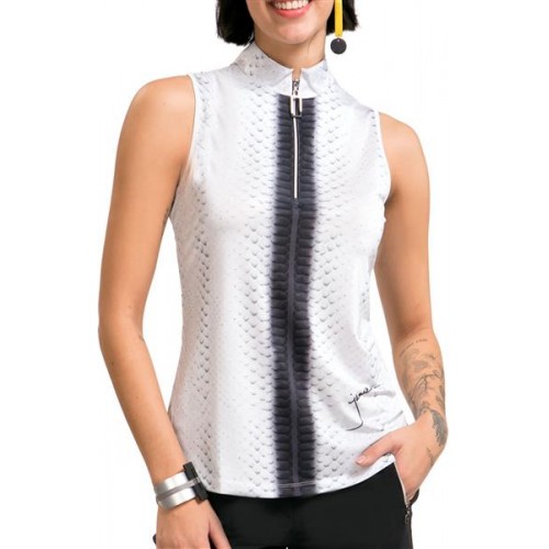 Jamie Sadock Women's Sleeveless Habu Print Mock Neck Golf Sugar Polo