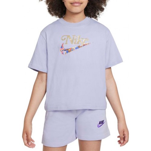 Nike Girls' Sportswear Studio Floral Boxy Purple Dawn T-Shirt