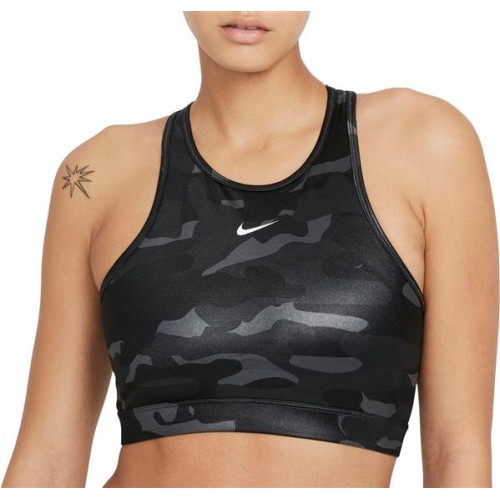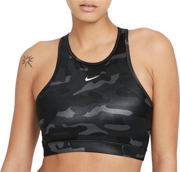 Nike Women's Dri-FIT Swoosh Medium-Support 1-Piece Pad High-Neck Sports Iron Grey Bra