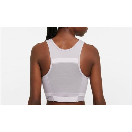 Nike Women's Dri-FIT Swoosh Run Division Medium-Support 1-Piece Pad Longline Sports Silver Lilac Bra