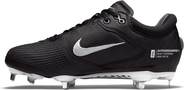 Nike Women's Hyperdiamond 4 Elite Metal Fastpitch Softball Grey/Black Cleats