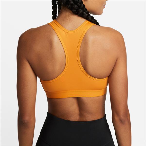 - Non-padded Nike Swoosh Sports Bra is made with compressive fabric for a supportive feel during medium-impact workouts