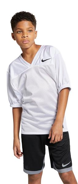 Gear up for drills or a scrimmage in the lightweight Nike Youth Recruit Practice Football Jersey. The lightweight mesh fabric is breathable to keep you cool and has a slim design to help keep pads in place. Double-layered shoulder panels are durable and the elastic sleeves keep your jersey in place.