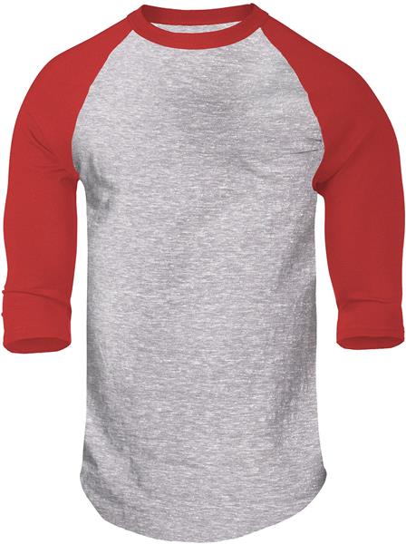 Soffe Men's Heathered 3/4 Sleeve Baseball Oxford/Red Shirt