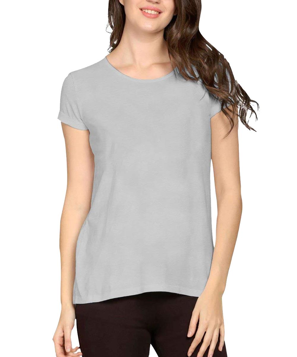 Women's Half Sleeve Cotton Plain T-Shirt, Grey. Here is a range of clothing T-Shirts that helps you to express yourself. Made from 100% Cotton, it is an all seasons comfort wear. In addition to that, the fabric is comfortable in high humid conditions. You can pair our T-Shirts with trousers and denim of your choice and make it a weekday smart casual or weekend casual party wear.